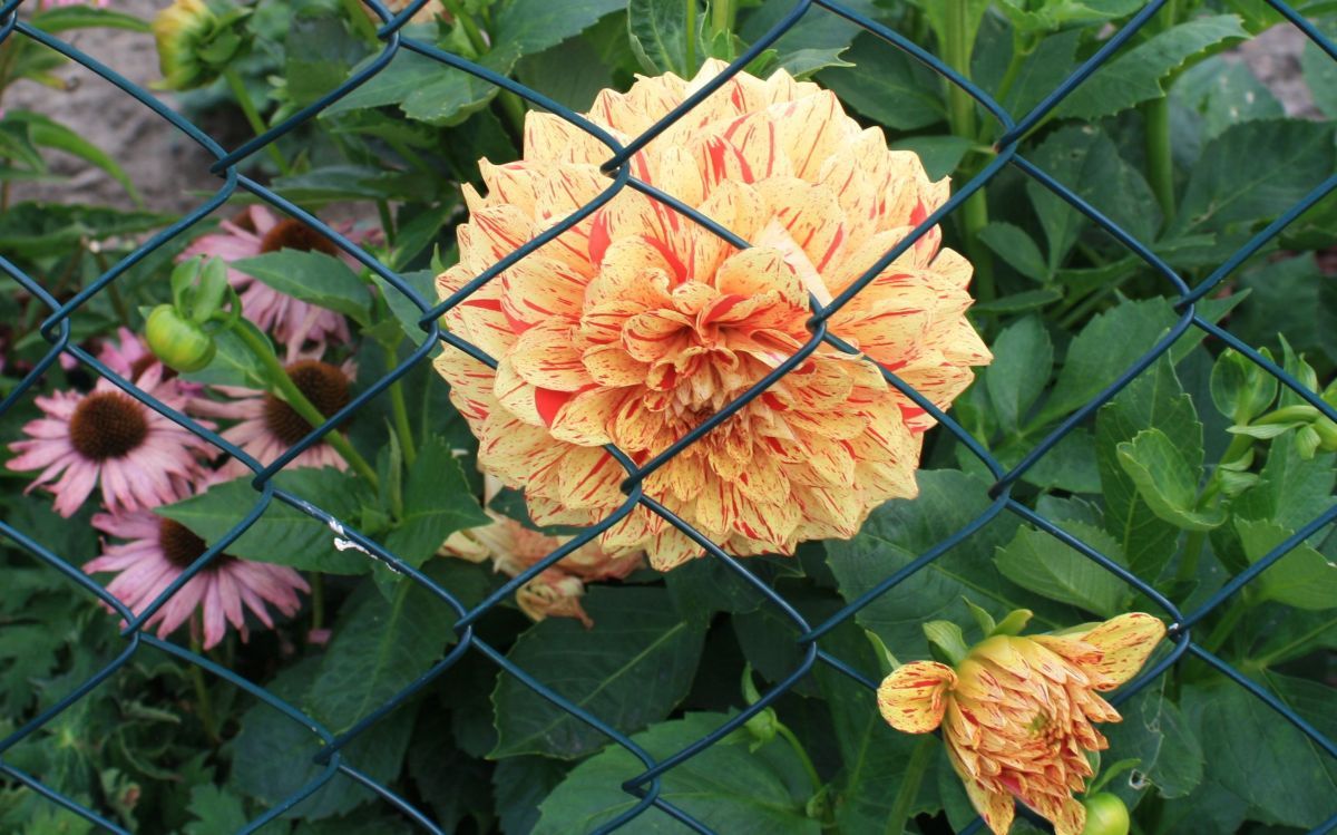 Dahlie am Zaun