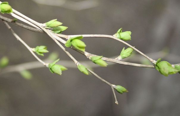 Manch ein Busch beginnt schon mit kleinen Blättchen. Schaut nur genau hin!